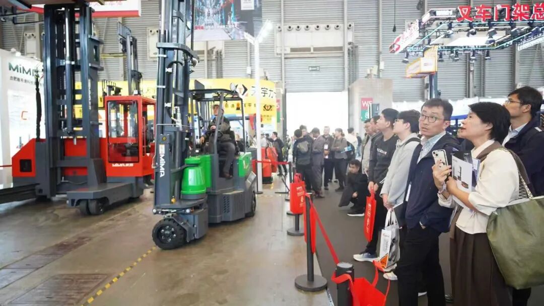 现场专业人员通过实际操作演示,向观众展示MiMA叉车在窄通道内的灵活性和精准性。不少客户对MiMA的产品表现出浓厚兴趣,尤其关注超窄通道叉车的具体应用。