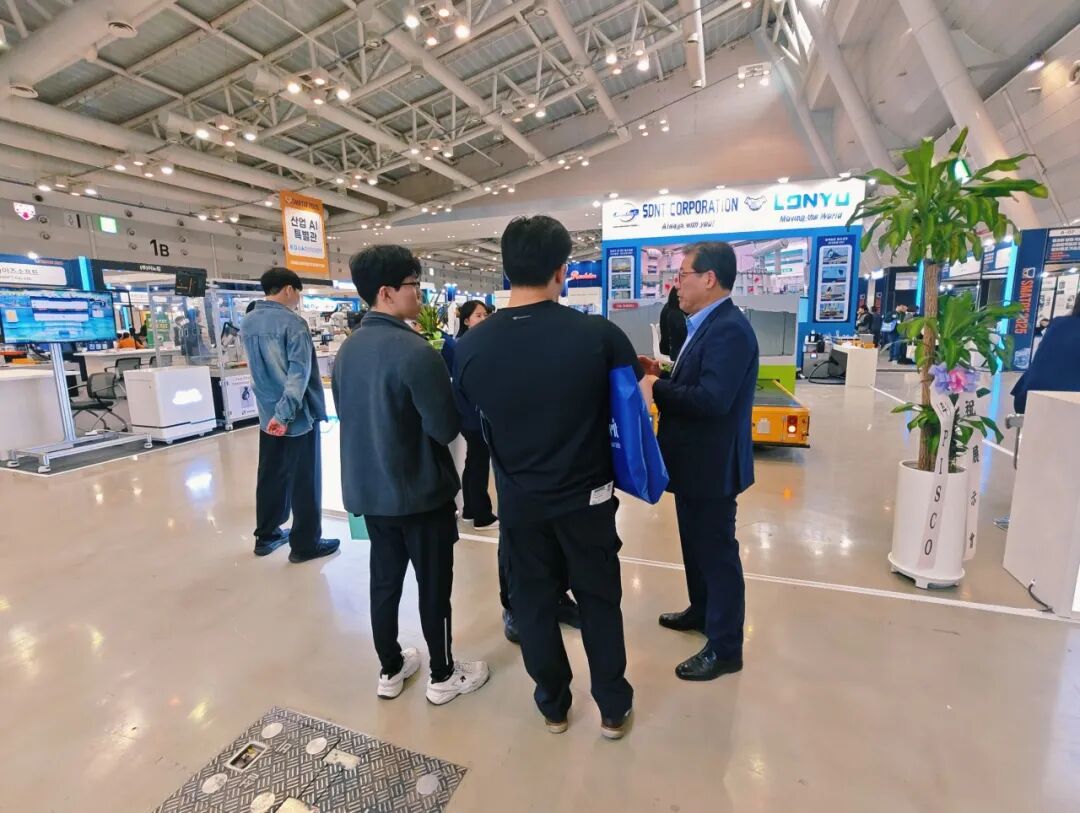 朗誉机器人的创新展示与硬核实力,吸引了大批专业客户慕名而来。展会现场,展位前始终人头攒动,既有来自韩国本土的制造企业代表,也有专程而来的海外采购商与行业合作伙伴。客户们或驻足观看 AGV “移动舞台” 的精彩演示,或围在展品前向工作人员详细咨询产品参数、应用场景与定制化方案,洽谈区更是座无虚席,双方就合作细节、技术适配、市场需求等话题展开深入沟通。不少客户在现场表达了明确的合作意向,纷纷留下联系方式希望后续推进合作,热闹的洽谈氛围印证了市场对朗誉产品的高度认可。