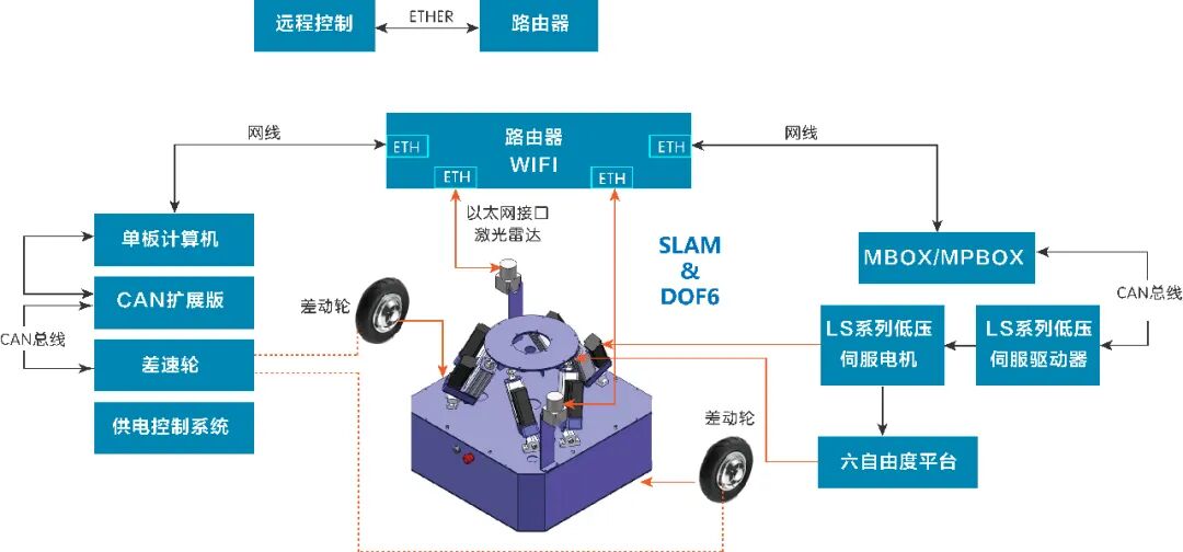 (全自主导航六自由度动态平台方案框图)