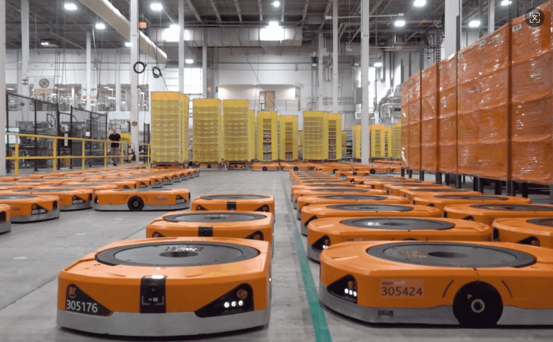 亚马逊的百万机器人大军使16万个新的就业岗位需求终结。沃尔玛、塔吉特和其他零售商也得出了类似的结论。亚马逊公司使用其 Proteus 机器人,在公司仓库中搬运装满包裹的推车。