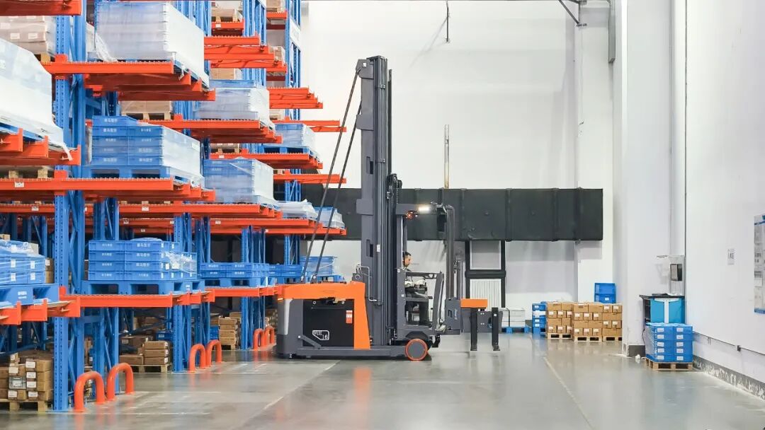 同时,人上型三向叉车在行走时驾驶舱可同步升降,这一设计将原本分离的“存储”和“拣选”两个环节合二为一,一个员工、一台车就能完成堆垛和拣选双重任务,既减少了人力成本和车辆调度的时间成本,又达成了客户希望提高订单拣选出库效率的要求。