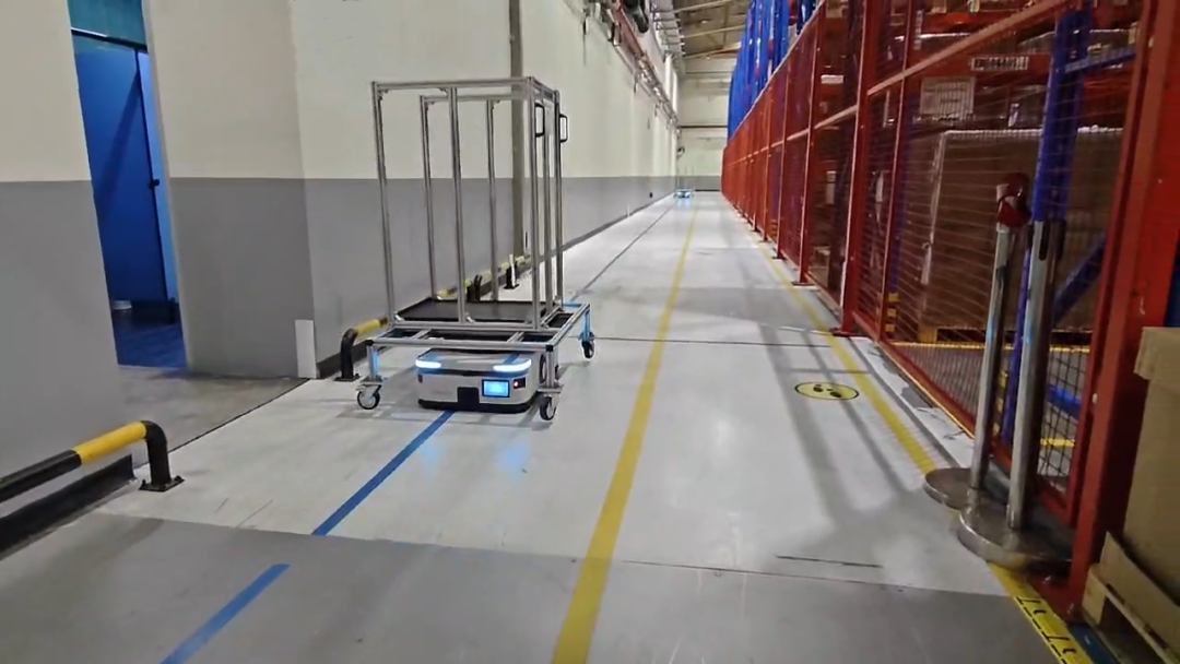 通过实现与料架间的±2mm精准对接和平稳交互,保障精密器件在流转过程中的安全与稳定;