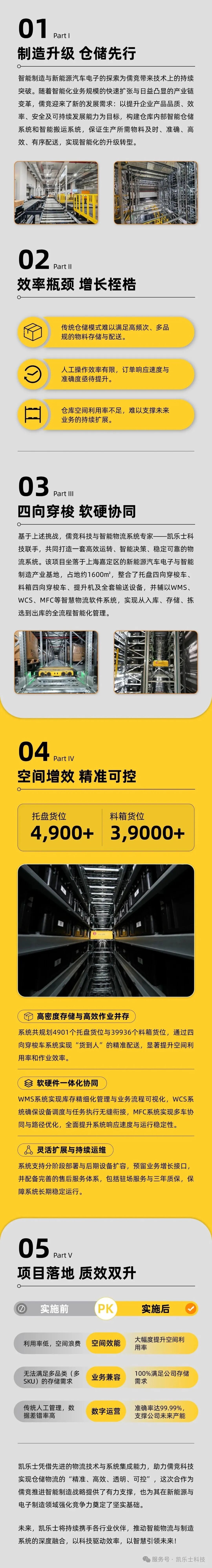 作为智能物流机器人专家,凯乐士科技提供业内领先的模块化、可扩展的综合智能物流解决方案,赋能企业供应链运营模式的转型,令运营效率再创新高。