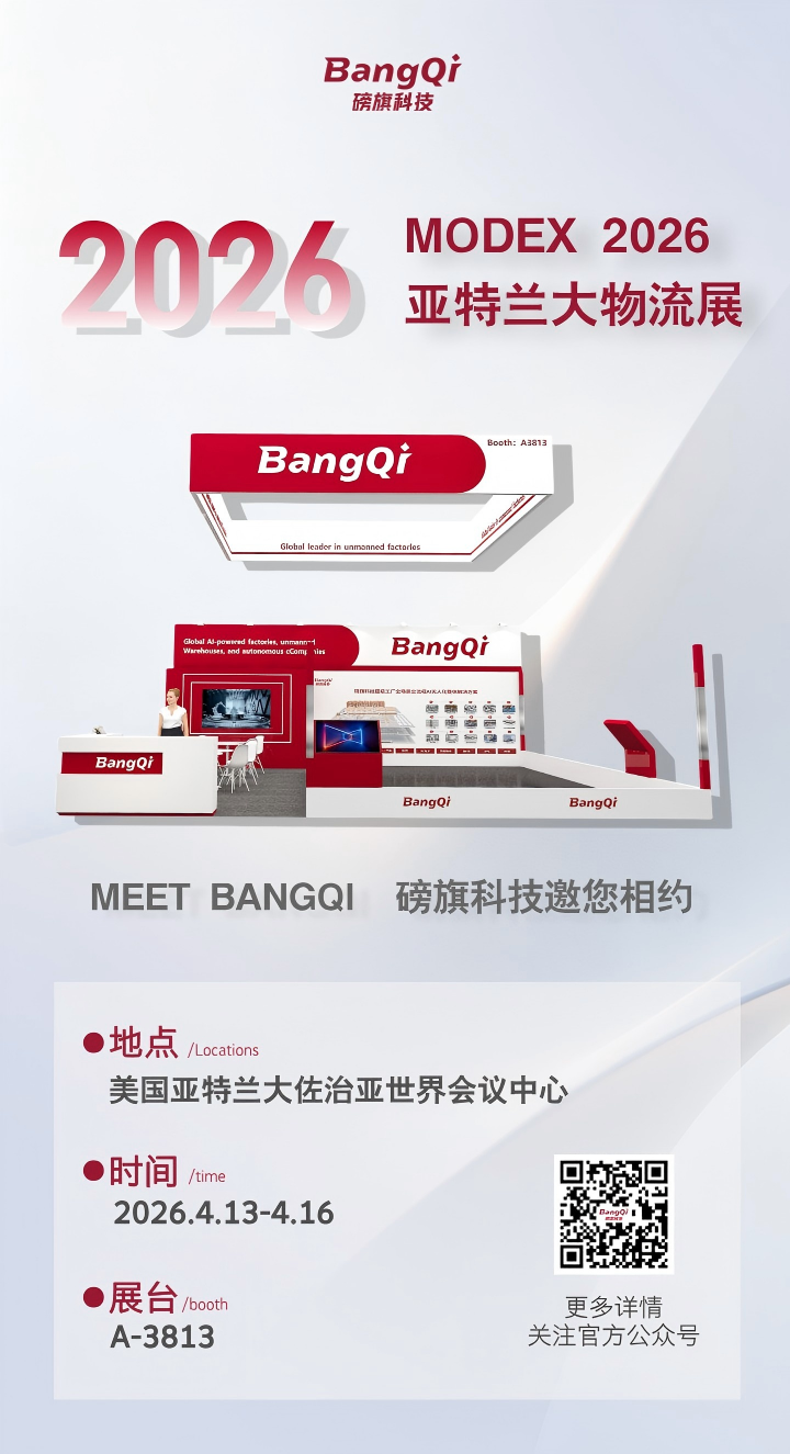 作为全球AI+无人工厂、无人仓库引领者,磅旗科技将首次亮相全球顶级供应链与物流行业盛会——美国亚特兰大物料搬运物流展览会(MODEX 2026)。展会将于2026年4月13日-16日在美国亚特兰大乔治亚世界会议中心举行,磅旗科技展位位于【A3813】。