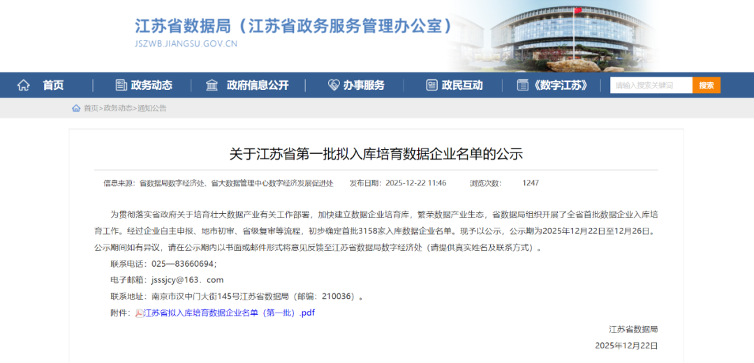 江苏省第一批拟入库培育数据企业