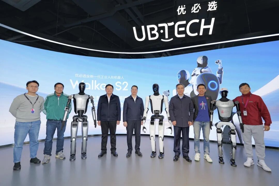 1月7日,中国贸促会会长任鸿斌、深圳市副市长罗晃浩、广东省贸促会会长陈小锋等领导一行莅临优必选调研。任鸿斌会长观看了人形机器人在工业制造、商用服务、人工智能教育等场景的最新应用成果,并对优必选在关键核心技术突破与全球化落地方面取得的进展表示高度认可。