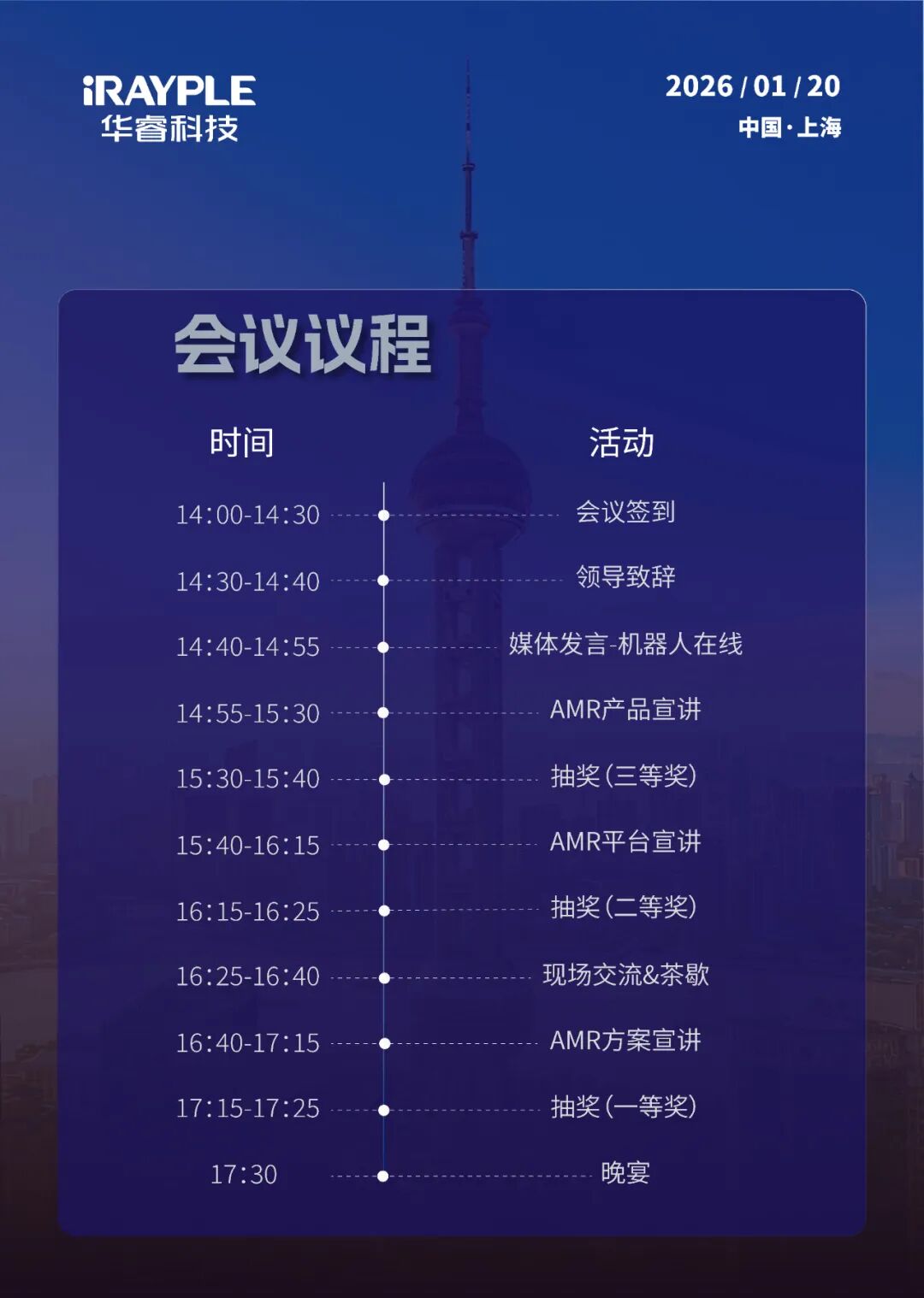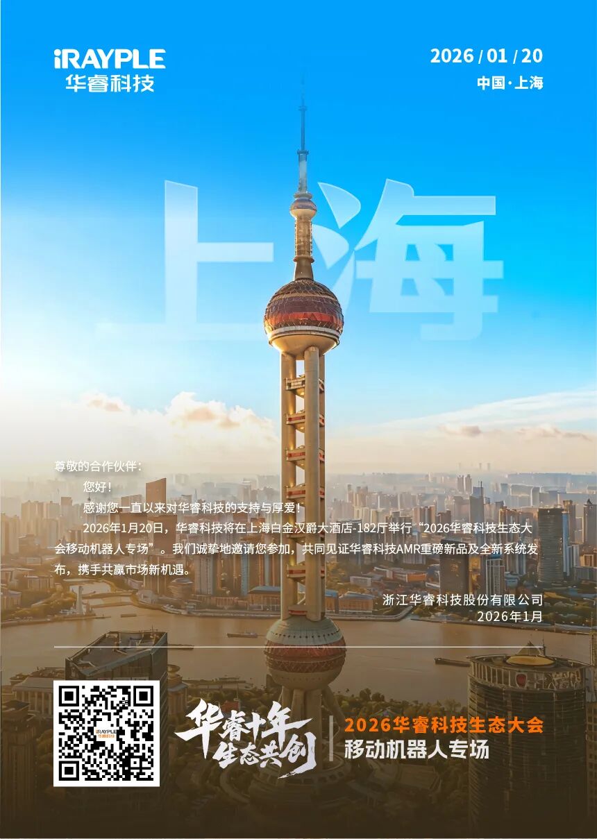 华睿十年,生态共创。2026年1月20日,“2026华睿科技生态大会移动机器人专场”上海站将于上海闵行白金汉爵大酒店举行。诚邀各位行业同仁与合作伙伴相聚上海,在机器人技术与场景融合的前沿对话中,共同开拓智能制造新路径,并肩构建协同发展的产业未来。大会亮点抢先看:• 权威媒体机器人在线趋势洞察• AMR产品体系与智能平台深度解读• 行业解决方案与标杆案例实战解析• 现场互动抽奖(飞利浦筋膜枪,小米充电宝,定制双肩包,天堂伞等好礼)时间:2026年1月20日 14:00–17:30地点:上海闵行白金汉爵大酒店-182厅扫码报名即可参与,现场领取参会礼。期待与您相约上海,共话机器人未来!
