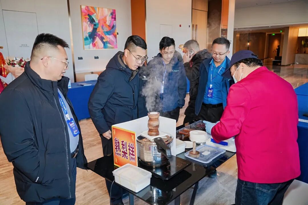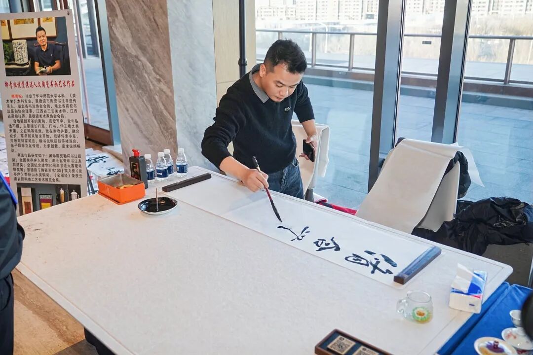 移师鹏邸凯悦尚选酒店,盛典氛围愈发浓厚。时尚的签到合影板前嘉宾云集,天津特色熟梨糕的香气与书法大师现场挥毫的墨韵相映成趣,在正式开场前便点燃了全场的热情。