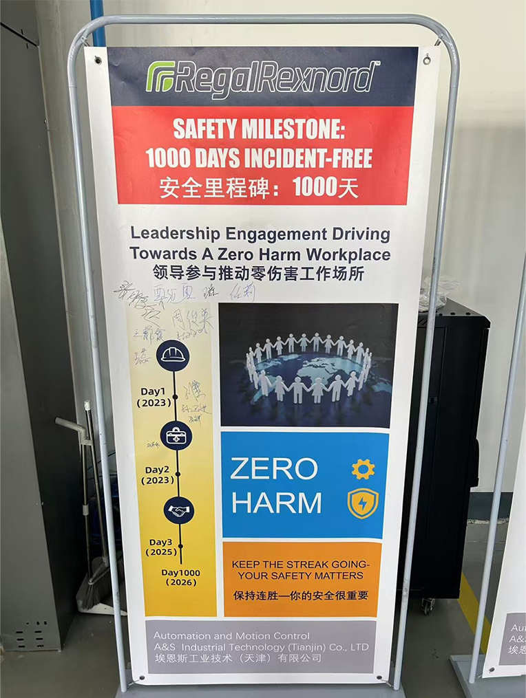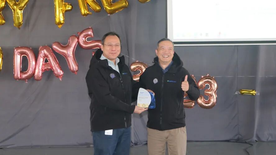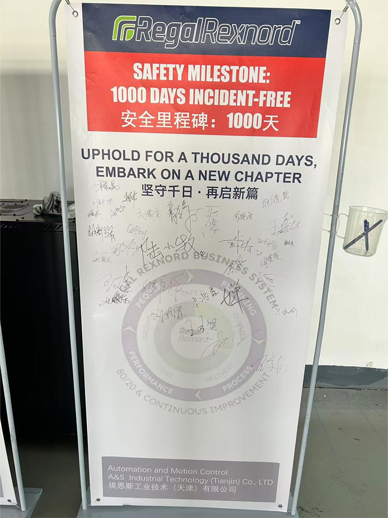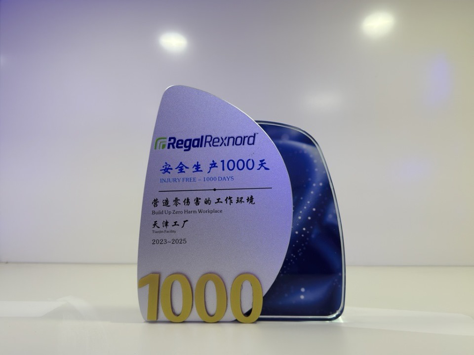 庆典的高潮环节,Regal Rexnord集团中国太平洋区域安全总监施卫先生代表费总,向天津工厂颁发了象征荣耀的“安全生产1000天里程碑”奖杯。这座奖杯不仅代表了集团的认可,更凝结着每一位员工的心血与付出。