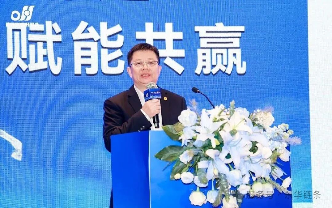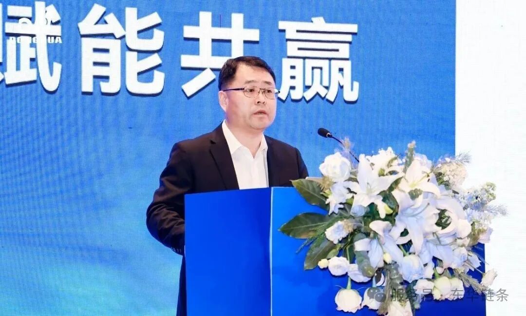 董事长宣成讲话。他首先欢迎大家参会,指出五年间客户规模持续扩大,多家经销商业绩超三千万,这与东华专业化、系统化、高端化、国际化的发展方向相契合。