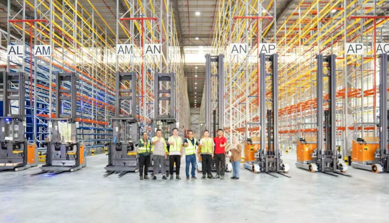 凭借丰富的仓储物流解决方案经验,卓一智能叉车与东南亚某电器行业客户达成合作,批量交付了前移式及高位拣选叉车,共同构建高效、安全的高位仓储物流系统。
