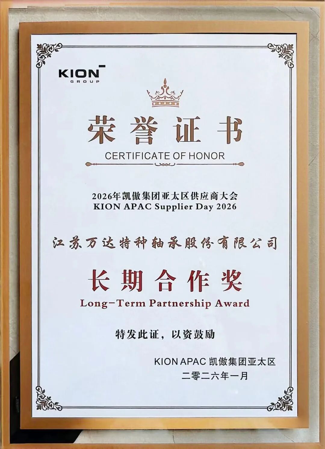 荣誉是肯定,更是前行的动力!万达轴承,与全球伙伴同心同行,共赴新程!