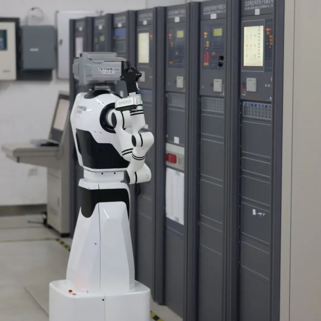 天创T12-B消控室值班机器人采用"智能终端+云端大脑"融合架构,集成激光雷达与深度视觉系统,实现全域自主导航与动态避障;配备精密升降模组及七自由度机械臂,可精准执行消防主机等关键设备操作。依托天创消控智能体的深度赋能,机器人具备自主决策能力,可智能生成巡检任务、优化巡检路径,并实时识别设备异常状态,实现预测性安全管理。突发应急场景下,智能体毫秒级响应,自动生成处置预案,协同机器人完成报警确认、联动处置及全流程记录,全面支撑7×24小时单人值守模式,构建消控室全链路智慧化管理新范式。