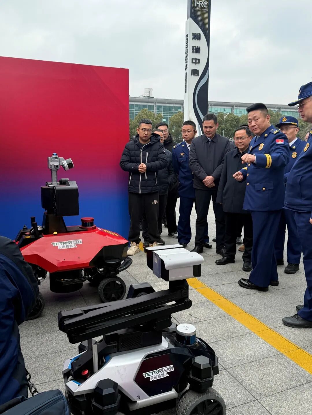 南京市消防救援支队领导及雨花台区消防大队领导也亲自莅临参观指导,对天创机器人在消防领域的具身智能机器人的技术研发和应用成果表示了高度关注与肯定。