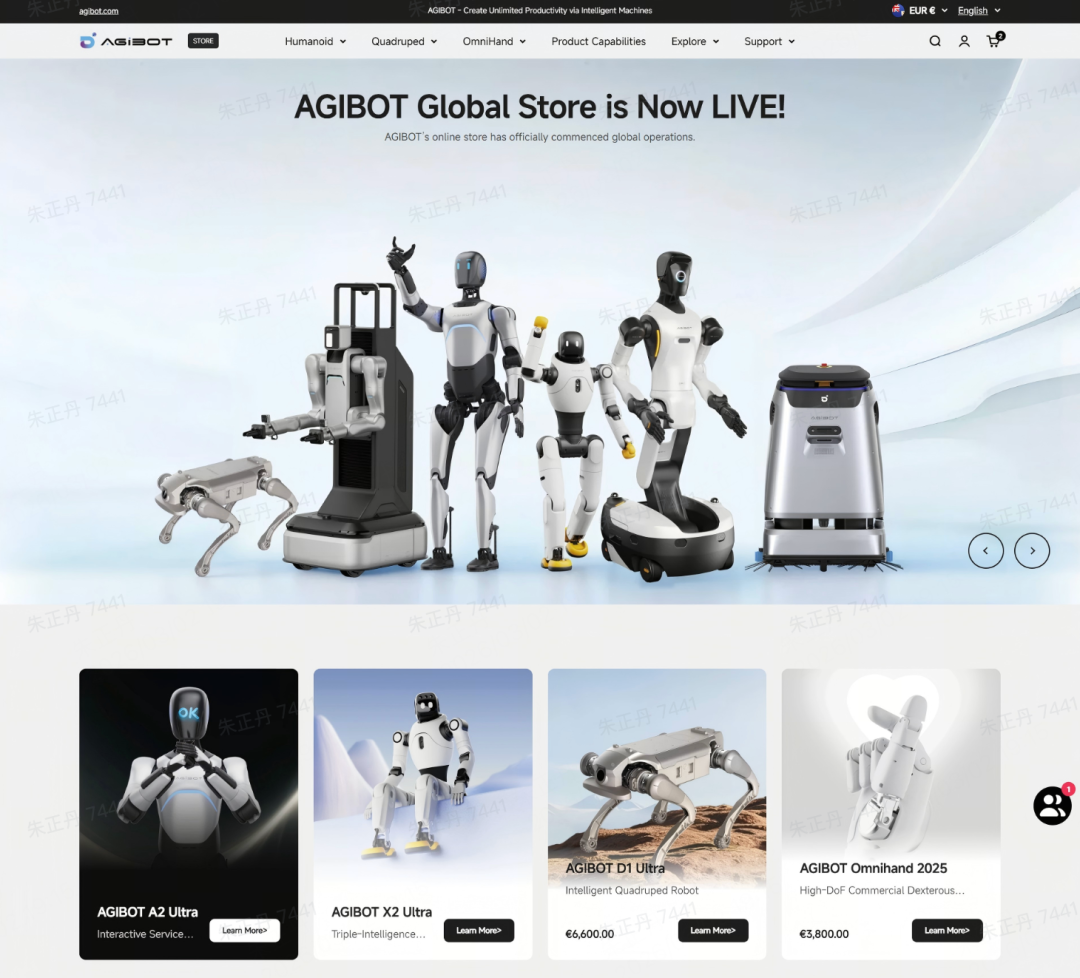 展会期间,智元宣布其海外官方独立站(store.agibot.com)正式上线,标志着其全球化服务体系的全面升级。该平台集成了全品类产品展示、“直采” 与 “租赁” 双通道购买模式,以及一站式商务咨询与定制化解决方案服务,成为连接全球客户的核心枢纽。