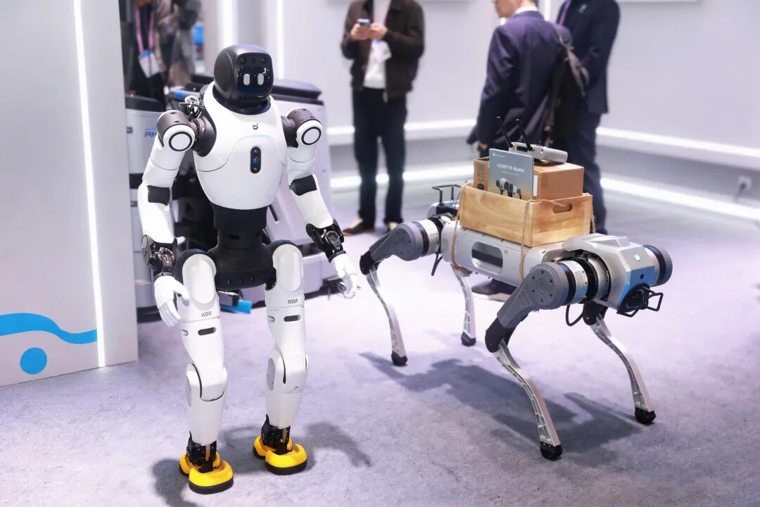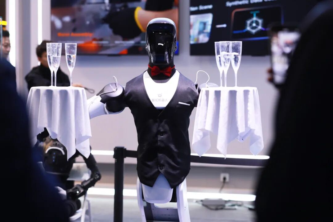 精灵G2 :化身优雅的酒店侍应生,凭借高精度力控平稳递送饮料。其工业级机械臂结合自研运动控制算法,让机器人能够胜任精密装配、柔性搬运等对精度和抗干扰性要求极高的实际场景。酷拓D1则展示了在复杂地形下的巡检与作业实力。智元还与中国电信首次公开展示了 “6G + 四足机器人” 的联合创新成果,展现了从地面到全空间的作业延伸可能。