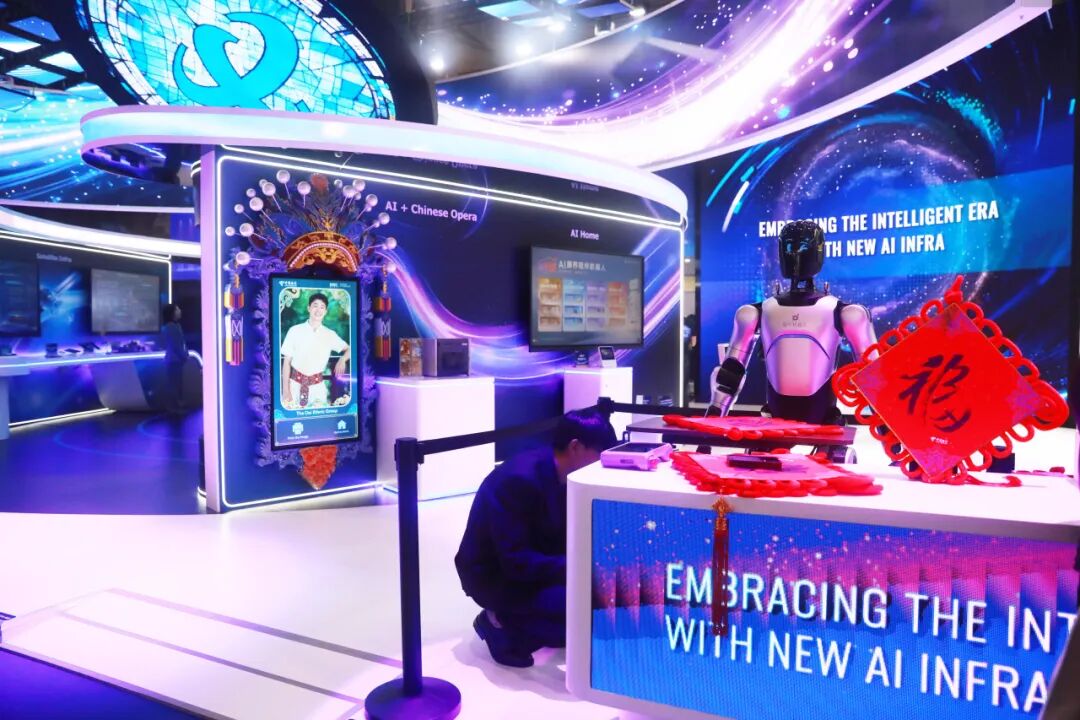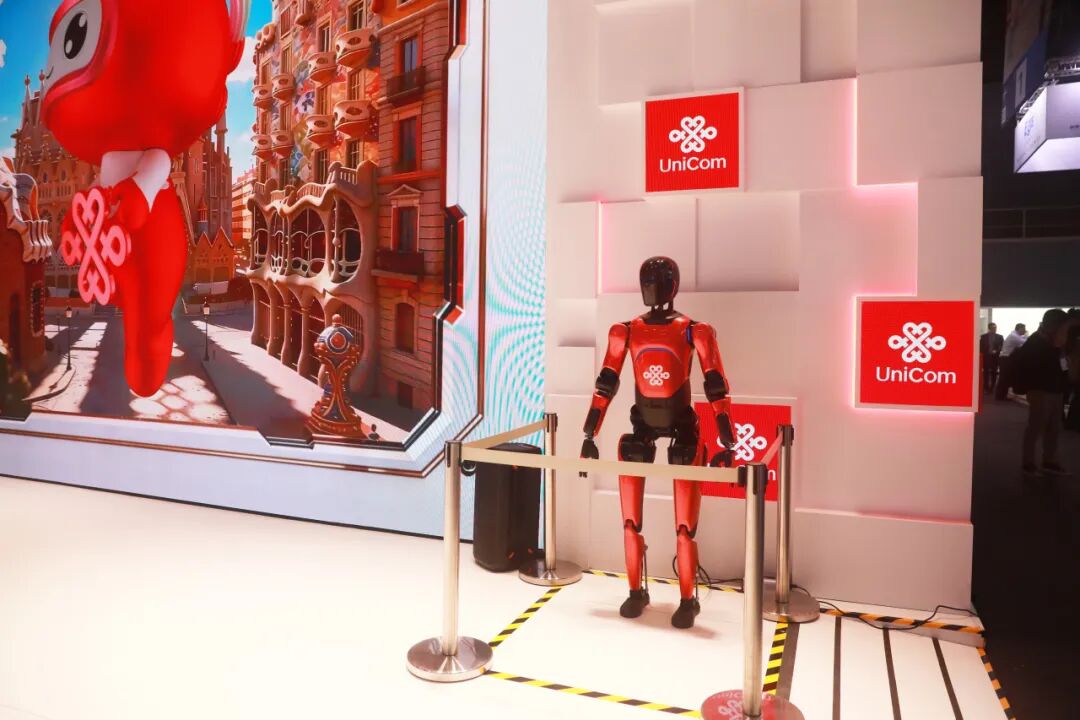 智元在本次MWC上创新构建了 “主展台核心展示 + 生态伙伴全域联动” 的立体化展出格局。其旗下远征A2、灵犀X2、精灵G2、酷拓D1及OmniHand 灵巧手等明星产品,不仅在智元主展台集中亮相,还在中国电信、中国联通、中国移动、中兴通讯等全球顶级运营商和通信设备商的展台上协同呈现,实现了 “多点开花”。