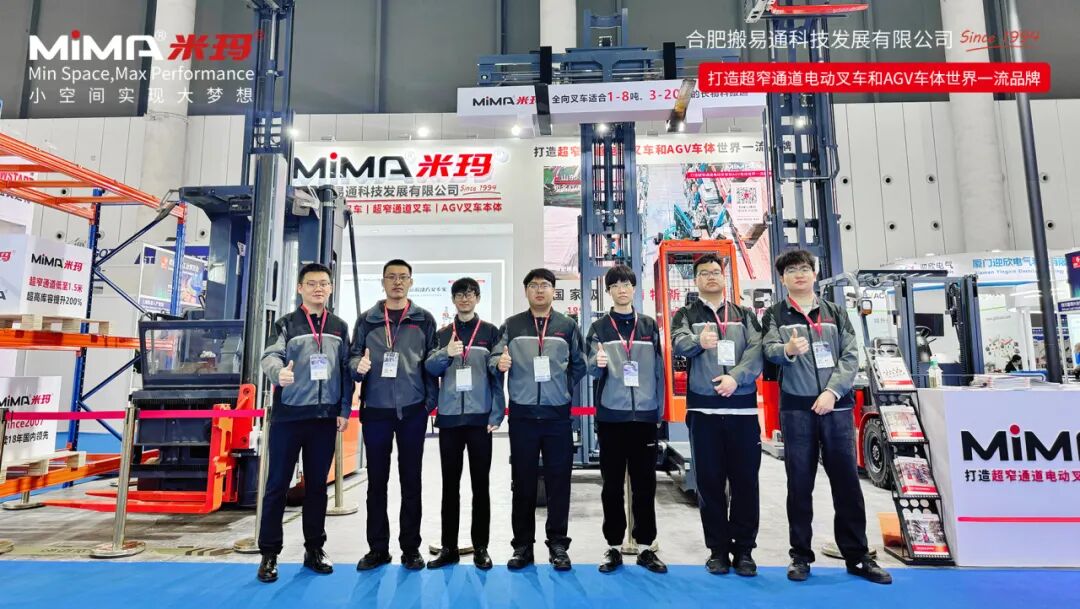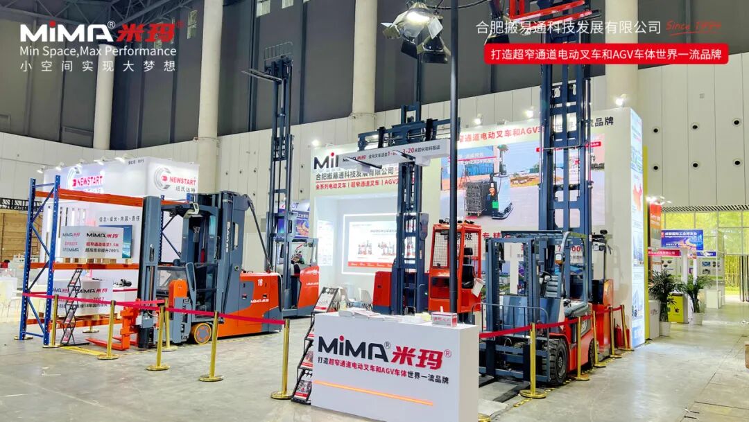 本次展会,合肥搬易通(MiMA米玛)展示多款明星产品,包括MCC16人上型三向车、MC16站驾人下型三向车、MQC30宽体坐驾全向叉车、MK20X平衡重式叉车、MFZ20前移式叉车、MBV15平衡重式堆垛车AGV车体、MEV20S托盘搬运车AGV车体,MiMA展位人气爆棚,获得了众多参观者的关注。