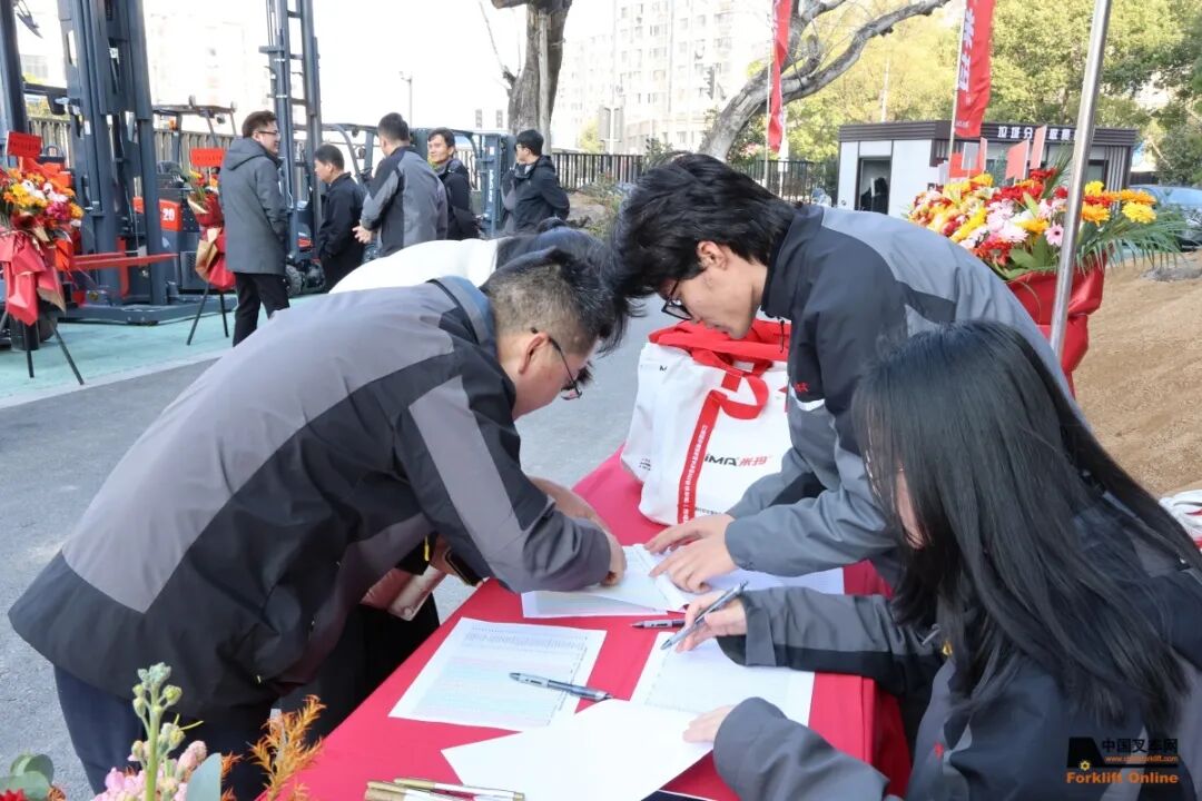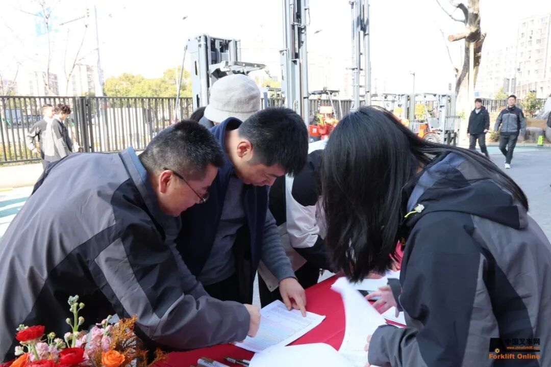 诺力集团副总裁、国内营销中心总经理蒋汉平,南京永达户外传媒有限公司副总裁吴丙礼,诺力优质大客户代表:零跑汽车高级副总裁宋忆宁、海南华铁大黄蜂业务负责人王新浩、龙合智能装备副总经理陈顺云与销售部长曹俊杭(部分),厦门、苏北、上海、浙江、南京等多地经销商合作伙伴,10余家主流媒体朋友,共计40余人,共同见证这一品牌里程碑时刻。