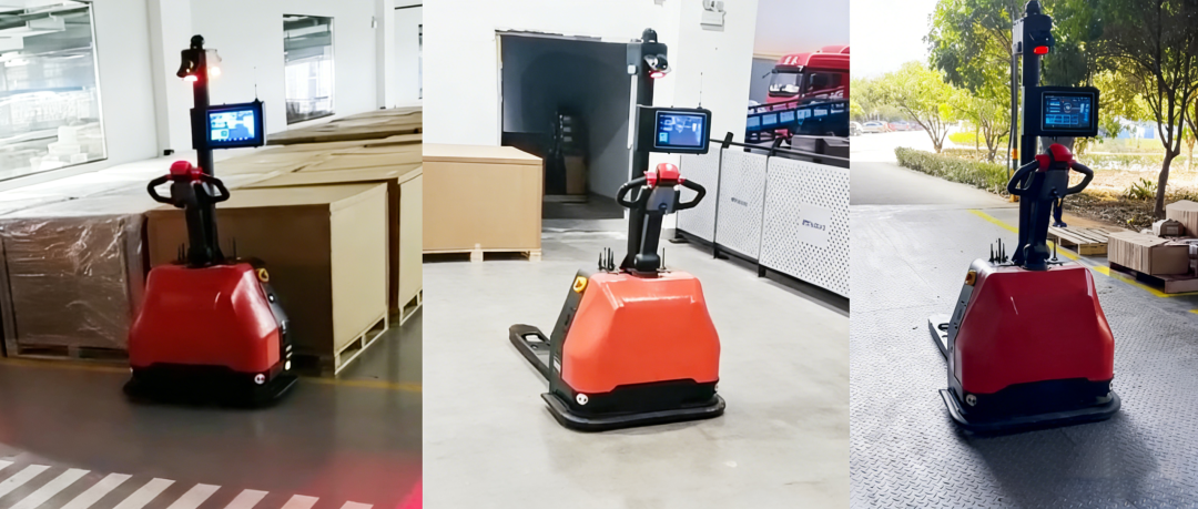 ✅ 室外短途搬运实拍:小巧灵活的车身的设计,无惧室外复杂路况,轻松完成电机物料从加工区到室外临时仓储点的短途接驳,填补室外短途自动化搬运空白,衔接电机生产发货全流程,无需人工干预即可高效完成作业。