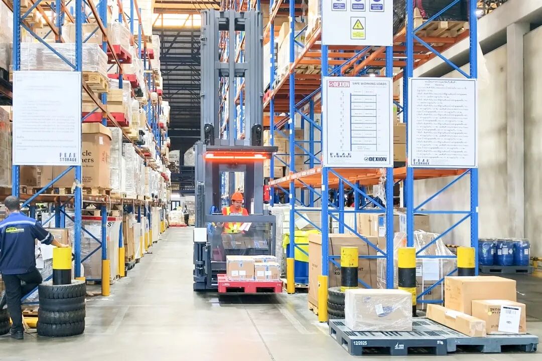 自卓一两台人上型三向叉车投入使用后,拣选和货物出入库效率显著提升,根据目标方案:货架升级后该仓库库容量预计提升50%,无需额外扩建即可解决库容不足的难题,提高仓储物流效益。