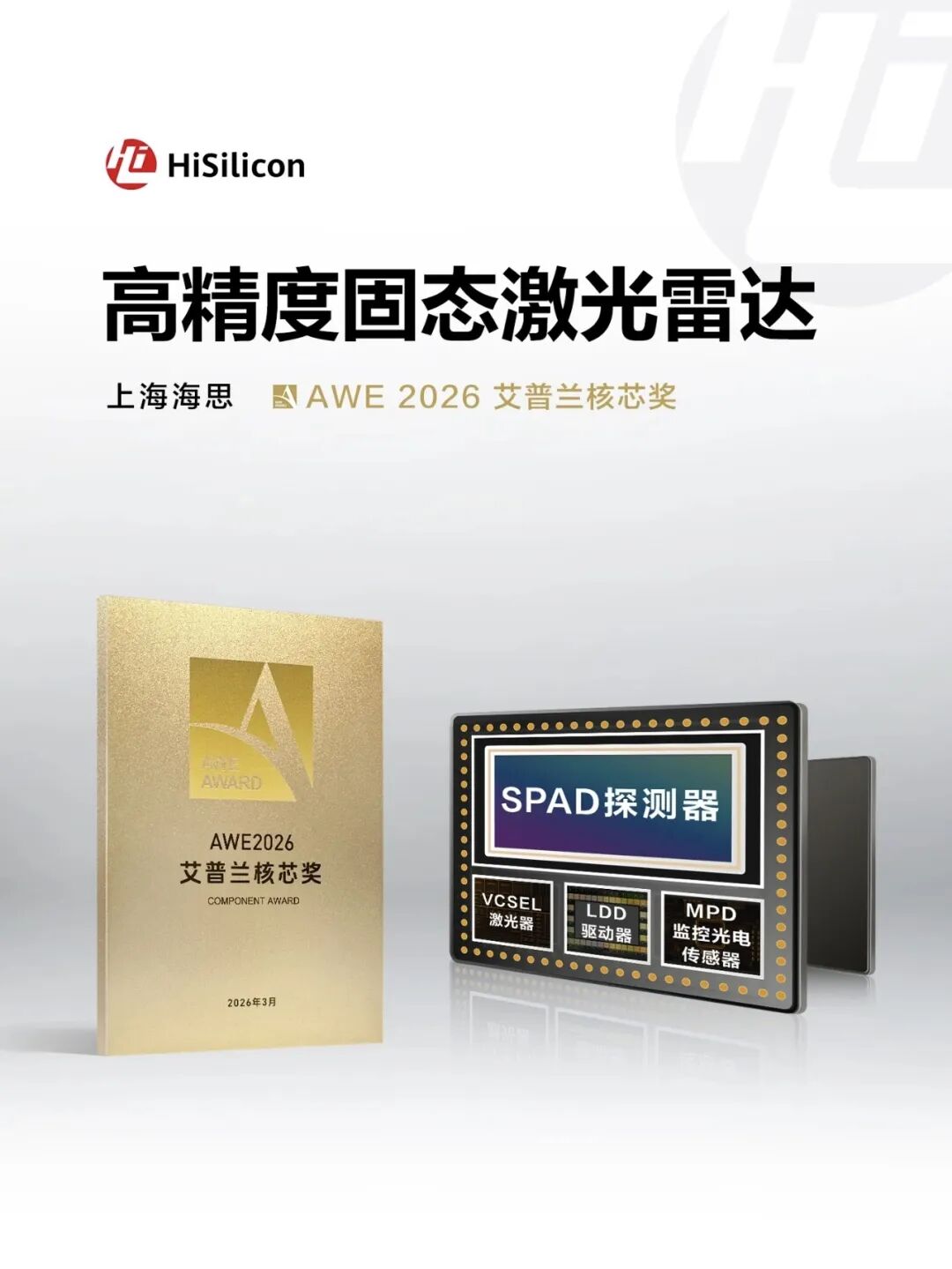 正是凭借其创新的技术路径、卓越的产品性能与广泛的应用价值,上海海思S1970高精度激光雷达解决方案荣获了2026年“AWE艾普兰奖”。