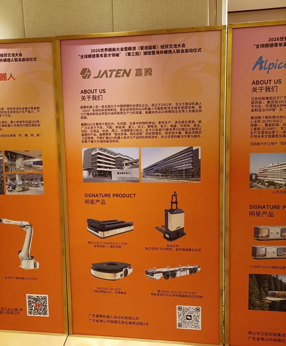 未来,嘉腾机器人将以本次会议为新起点,依托顺德产业优势与政策支持,加强国际技术交流与经贸合作,与海内外顺商携手共进,助力顺德制造在全球市场绽放新光彩,为顺德打造制造业高质量发展标杆城市注入强劲动力。