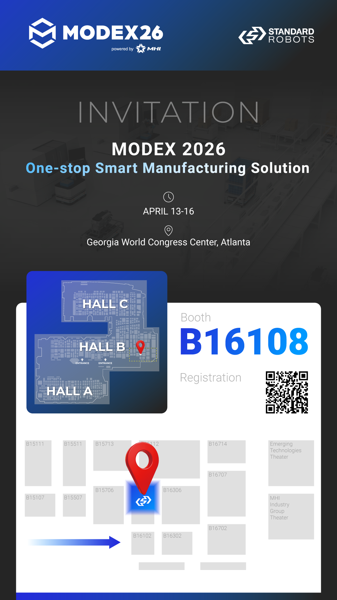 美国亚特兰大MODEX 2026开幕在即斯坦德机器人将携一站式工业智能机器人解决方案,与您共赴全球顶级物流盛会!时间:2026年4月13日-4月16日(当地时间)地点:美国亚特兰大乔治亚世界会议中心 展位:B16108