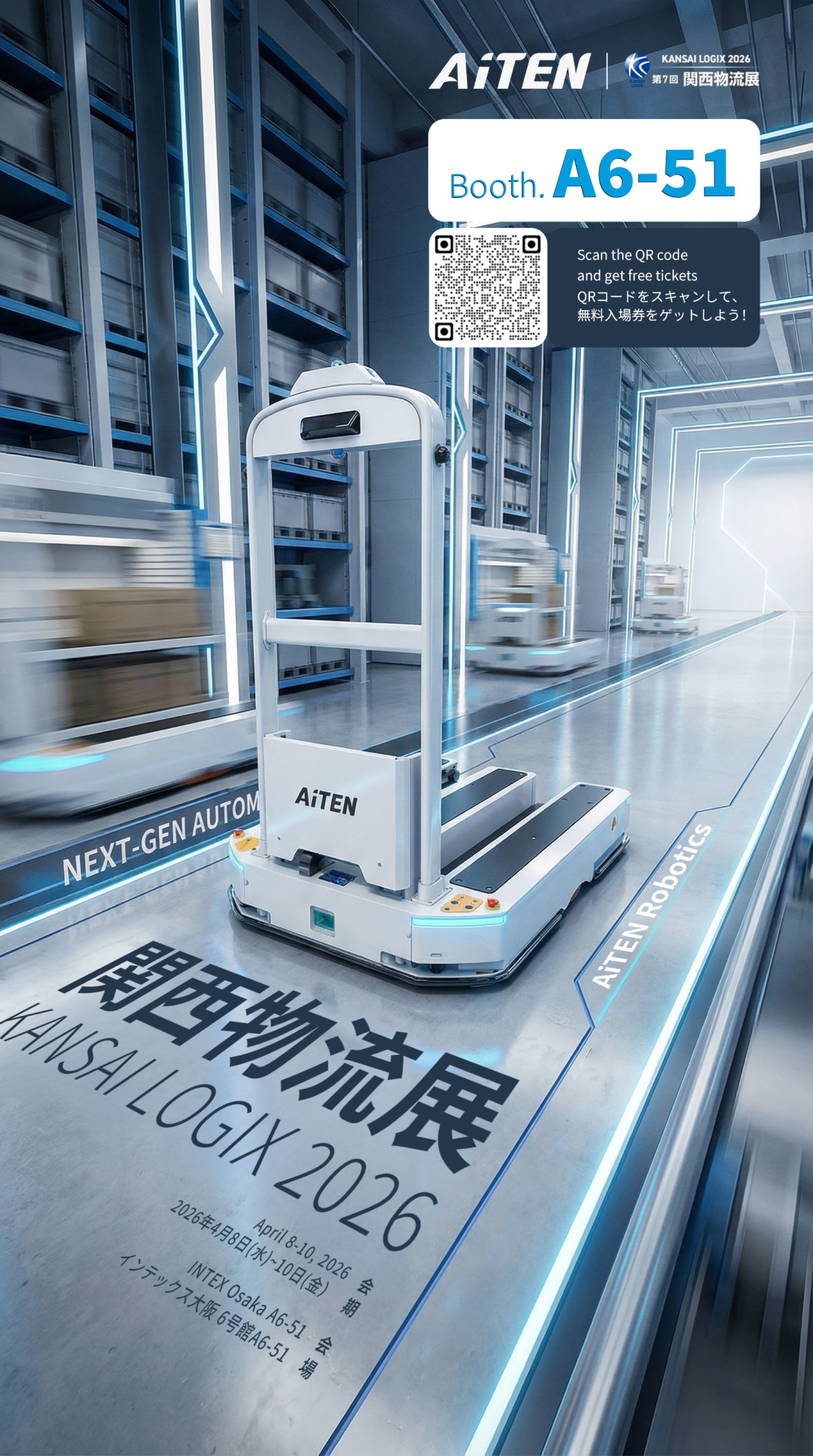 日本是全球自动化水平最高的市场之一,也是AiTEN重点布局的区域之一。此次 KANSAI LOGIX 2026,AiTEN将展示适配日本工厂环境设计的产品与系统解决方案。