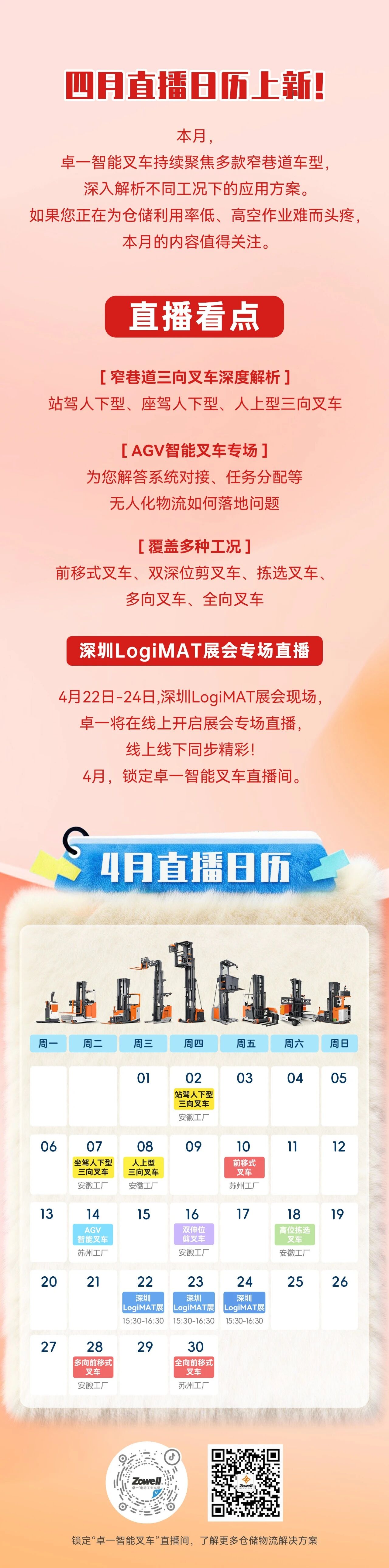 成本可控・效益倍增!4月卓一系列直播,系统性讲透窄巷道与无人化物流方案
