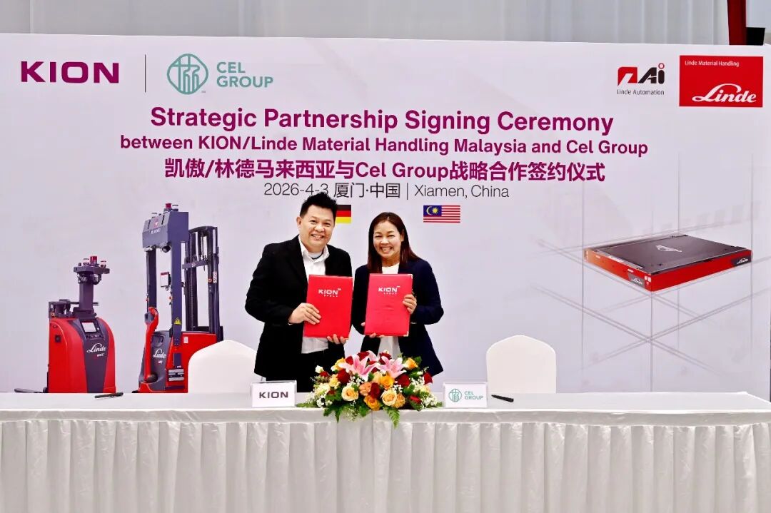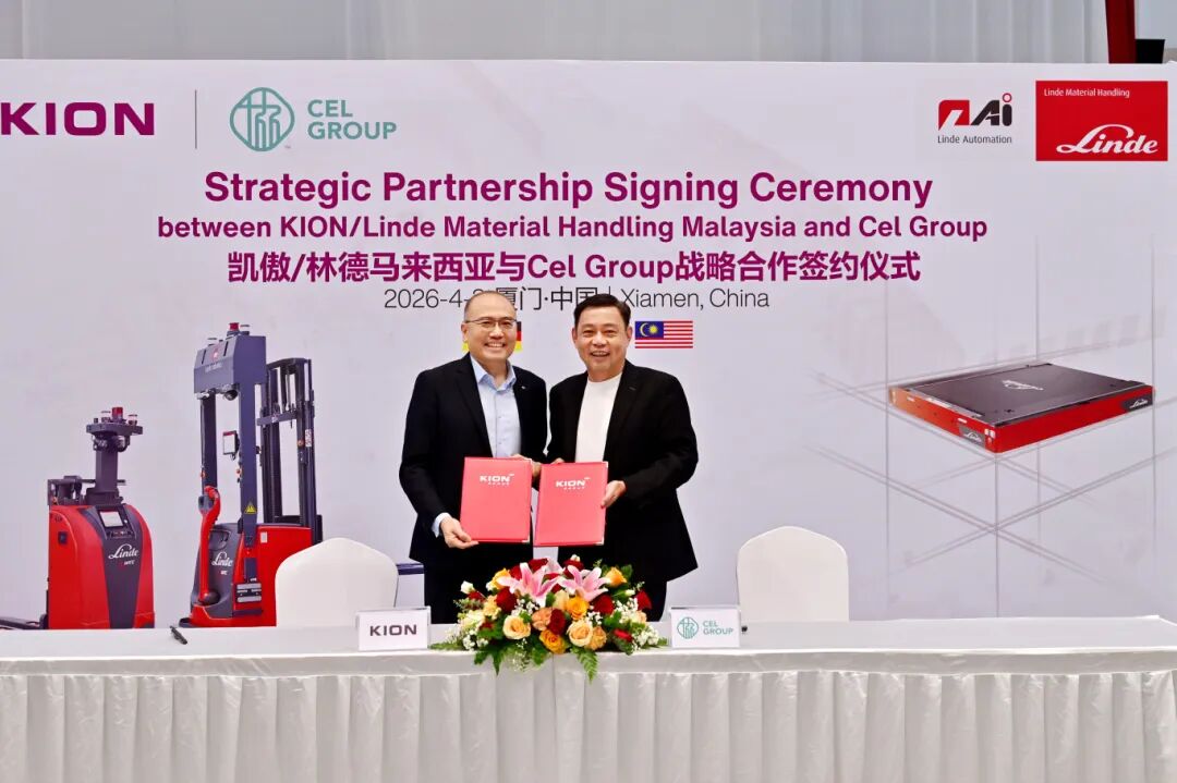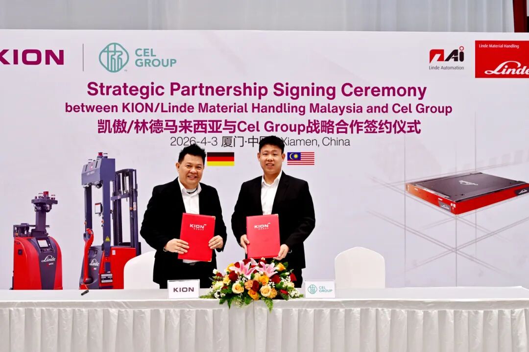 2026年4月3日,凯傲集团与Cel Group在林德厦门工厂隆重举行了战略合作签约仪式。双方将在自动化物流领域展开深入合作,进一步强化战略伙伴关系,携手开启崭新征程。Cel集团创始与主席Lee Chong Keong、凯傲集团亚太区战略及产品管理高级副总裁、中国区商务高级副总裁谢德安、凯傲南亚区董事总经理Tee Seng Chuan及双方管理层共同出席本次活动,见证这一重要时刻。