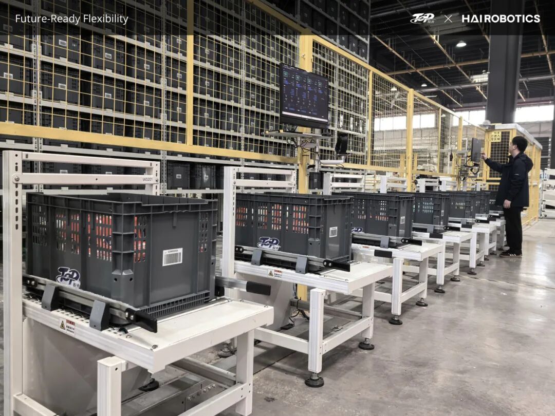 在一期基础上按需扩容,增设12台闪攀机器人、4套缓存货架入库工作站、5套人机直拣出库工作站,进一步提升集群作业能力与站点处理效率,从容应对业务增量与订单洪峰。