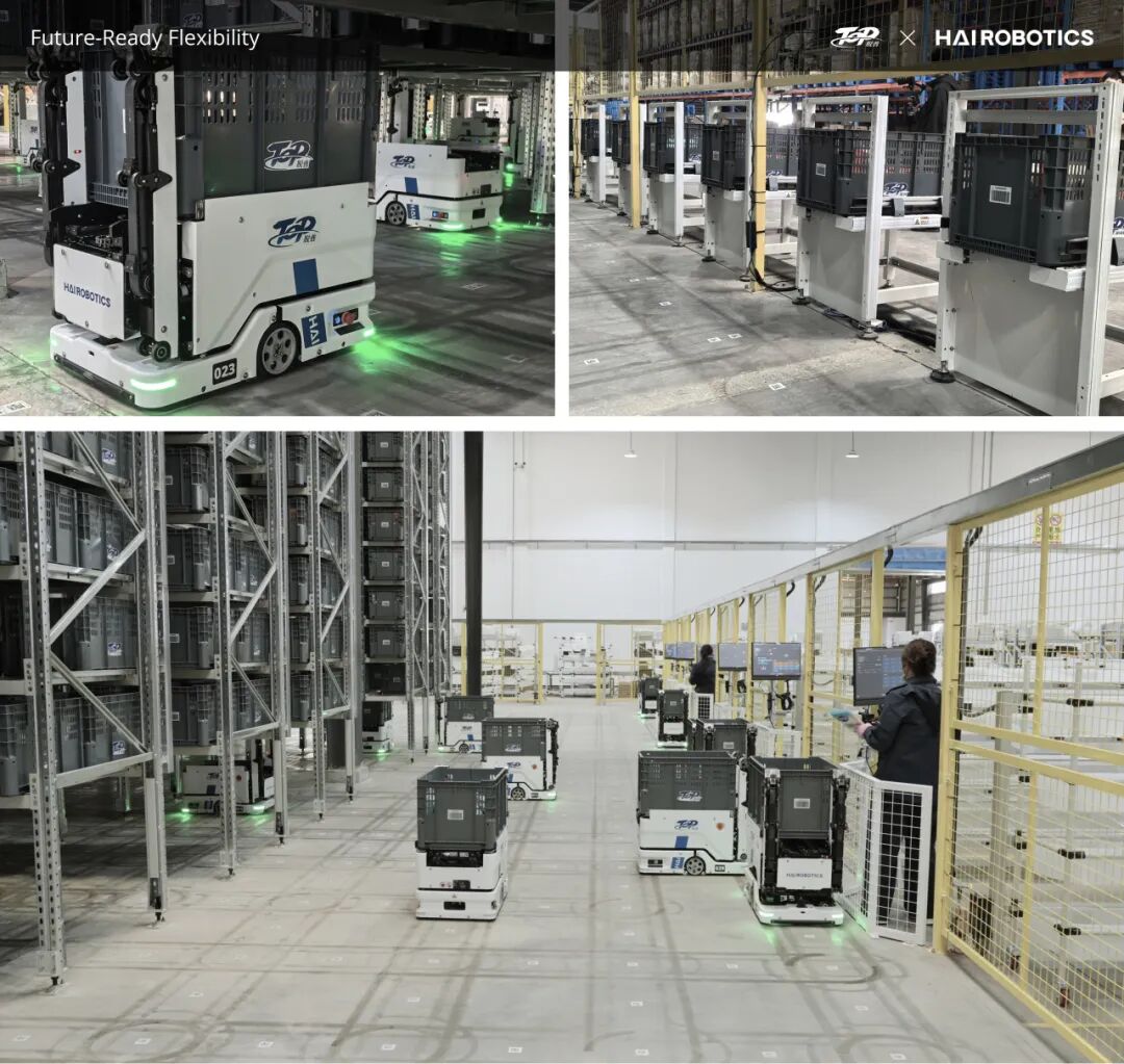 依托海柔创新智能系统与仓储机器人协同作业,脱普供应链科技鄂州基地仓实现日均35000单的高效履约。