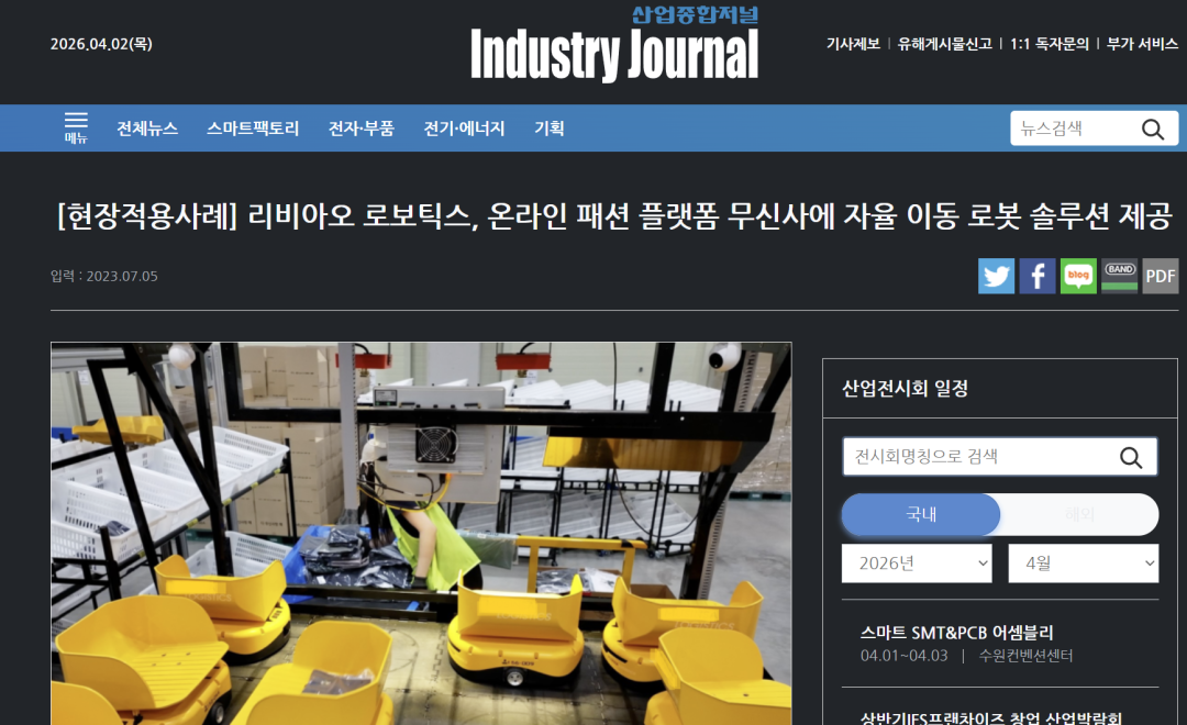 凭借领先的智能物流技术,立镖在韩国市场斩获亮眼成绩,多次登上韩国权威产业媒体报道。其自主移动机器人(AMR)解决方案成功落地韩国头部时尚电商平台的大型 3D 分拣仓,以百台级规模高效支撑订单处理,展现了成熟的场景适配能力。