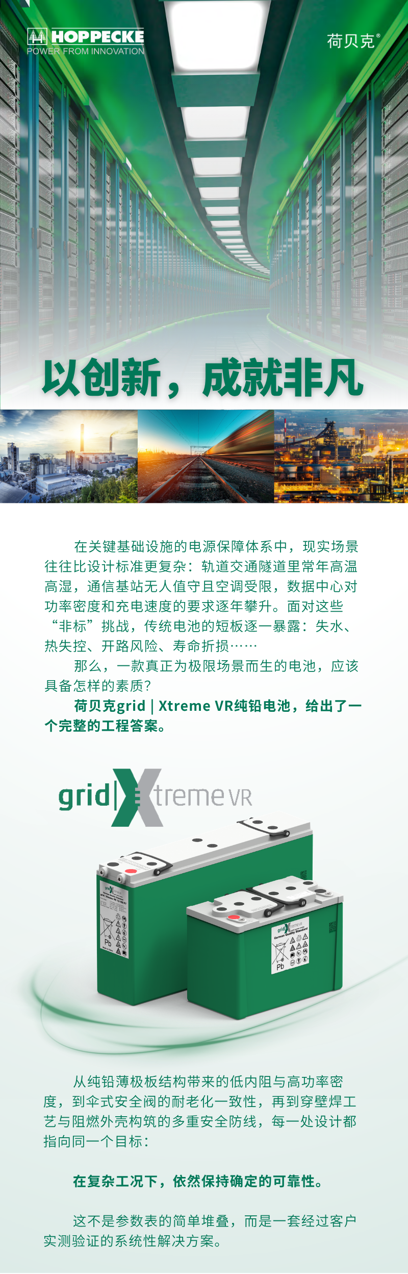 HOPPECKE 工业电池德国总公司 Accumulatorenwerke HOPPECKE Carl Zoller & Sohn GmbhCo KG 史建于1927年,是欧洲最著名的四大蓄电池制造商之一。1998年HOPPECKE进入中国,在上海市外高桥保税区投资注册好牌工业蓄电池(上海)有限公司。随着国产化的深入,需求量的扩大,为了进一步满足中国市场的需求,2005年4月荷贝克德国又引进德国的先进生产工艺,技术以及现代化的企业管理理念,在武汉投资建设了除德国外的最大生产基地--荷贝克电源系统(武汉)有限公司。