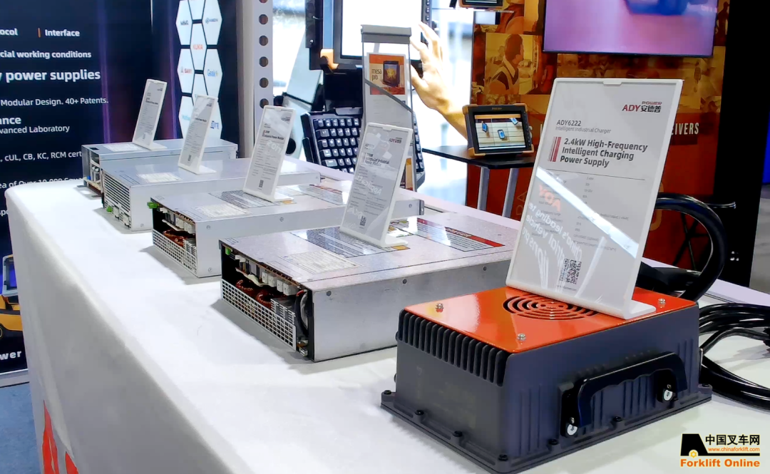 卡斯卡特、靠普、博索尼、凡己、乐亿通、安德普等配件企业成为供应链的坚实后盾。卡斯卡特的纸卷夹与侧移器、靠普的旋转推拉器、博索尼的货叉快换系统,展示属具的模块化与适配能力;凡己的新一代交流异步控制器、乐亿通的高倍率锂电池及智能B+MS系统、安德普的叉车充电机,则为新能源叉车提供从电控到补能的完整解决方案。鹏成、安特威尔等企业也同步亮相,为出海整机提供本地化配套支撑。