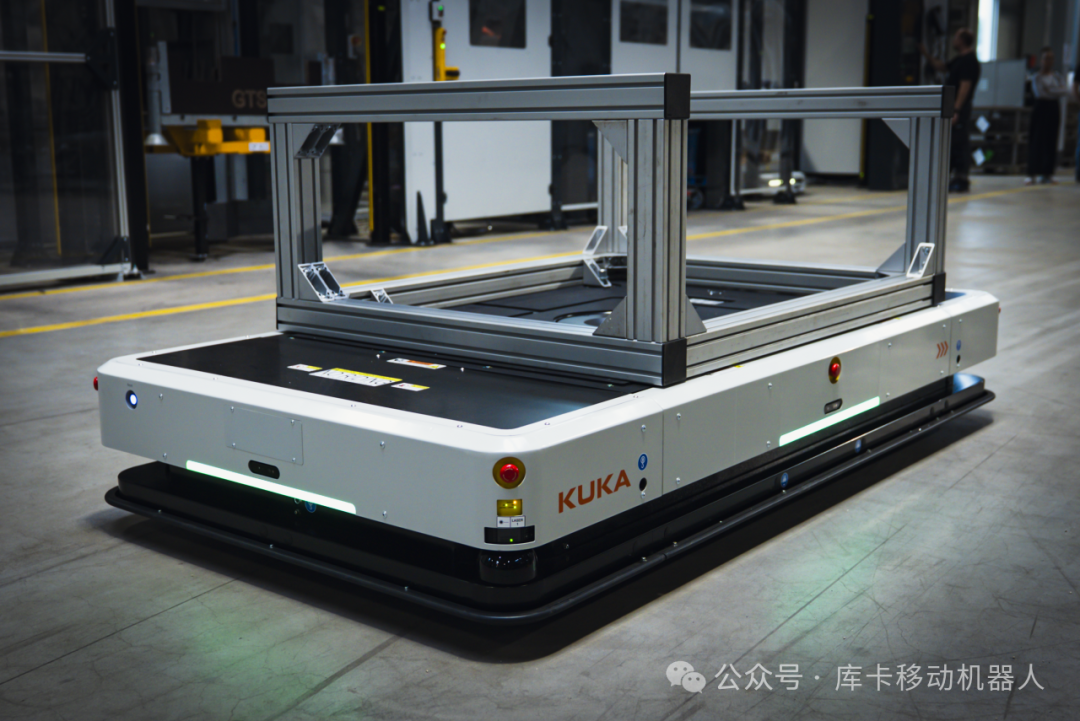KRONE的做法很务实——先从车间物流入手:引入KUKA AMR,配合焊接与搬运机械臂,组成了一个自动化焊接单元。在这个单元里,AMR负责运输物料与成品,六轴机器人负责抓取、定位、焊接,视觉与激光扫描保障安全,感应充电则让设备可以持续运行。