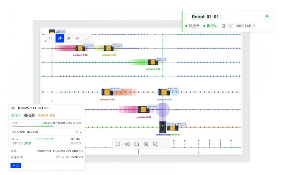 M4 作为 All-in-One整合系统,支持一个系统轻松管理机器人调度、仓储配送业务,可支撑百万级库位、上百台多机型调度。同时推出 M4 AI 助手,作为行业内率先将大模型与机器人深度融合的智能体,操作者通过自然语言即可下达任务,让智能响应不再受限于场景,让复杂系统归于简单对话。