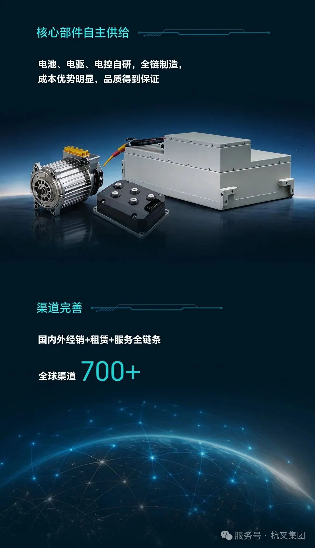 公司(母公司)实施“两头强、中间精”的发展模式,拥有高新技术研发中心、省级技术中心,拥有一支实力雄厚的全球供应商队伍、一个精益高效的生产支持系统和一支由80多家销售服务型分子公司和140多家国内经销商、70多家国外经销商组成的强大的营销服务网络,为全球用户提供优质的产品和服务。