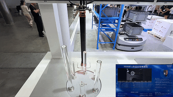 现场模拟多高度、变距离读码难题,R5000Pro系列AI读码器搭载液态镜头+TOF测距,自动对焦,快速识别。紧凑机身、灵活光源、可旋转接口,轻松适应各类物流与工业场景。