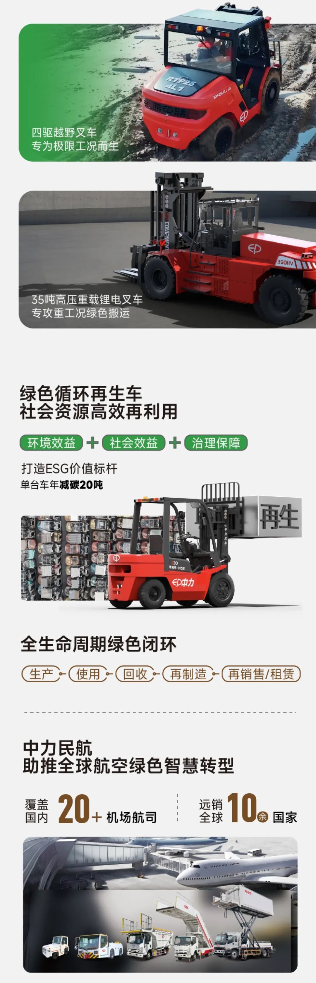 中力强调社会责任,坚持正念,致力于通过努力工作,为降低物料搬运过程中的资源消耗及空气污染做出贡献。