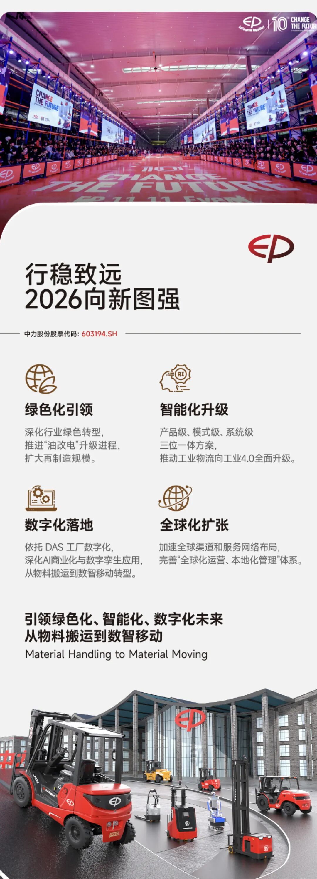 中力叉车(EP EQUIPMENT)是一家依靠产品创新而飞速成长的企业,专业从事电动仓储设备及叉车开发、制造、服务的全球性企业。