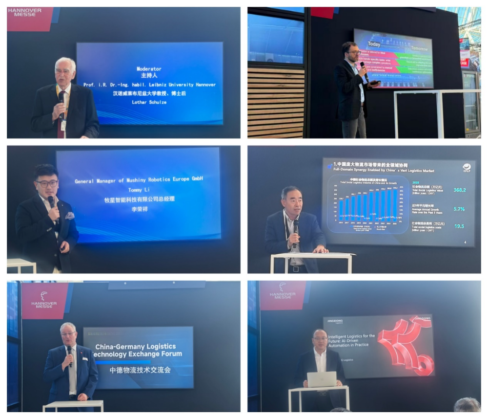 中国物流与采购联合会党委常委、副会长兼秘书长马增荣发表演讲,结合2025年中国社会物流总额368.2万亿元等数据,阐述中国物流市场的机遇及中德合作空间。牧星智能欧洲区总经理李荣祥、京东物流技术高管分别分享中国智能物流技术在欧洲的落地实践,现场德国听众提问积极、交流深入,既展现欧洲市场的需求,也体现中方企业对本地化运营的重视。