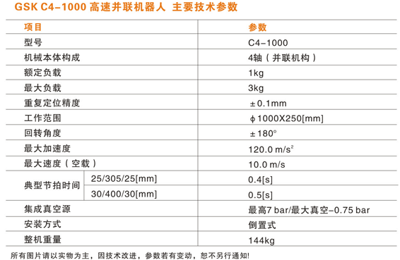 GSK工业机器人每个关节的运动均由一台伺服电机和一台高刚度低侧隙精密减速机共同实现,每个伺服电机均带有失电制动器;同时配以先进的电器控制柜和示教盒,使其运动速度更快,精度更高,安全性更优越,功能更强大。