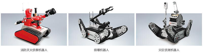 履带式机器人平台是智能移动机器人基础研究载体,综合了运动控制、图像处理、机器人等学科,可搭载机械手等搬运设备、武器设备、消防设备、探测设备、抢险设备等,用于远程遥控搬运、探测、救助、警用防爆、军队侦察作战、危险环境无人作业等场合。本机器人平台分为防爆型和普通型,可在障碍物多的特殊环境下行驶,适应水泥路面、泥泞路面、草地、楼宇巷道等地面和楼梯环境,具有很好的移动能力,为环境探测、排爆、武装、消防等功能的完成,搭建了一个机动性好、可靠性高的机械移动平台。应用场所包括:战场、矿山、铁路、机场、废墟、化工、核辐射场所等。