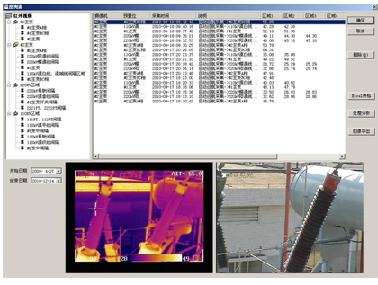 每一次系统采集图象(包括手动采集和报警),都回在列表中增加一条温度记录。选择某条温度记录,在屏幕下方就显示采集时的红外图片和相应的可见光照片。