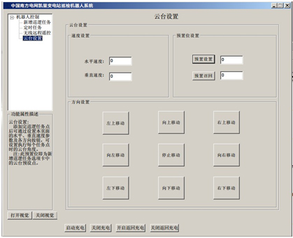 1.操控指令:前后行走,左右转弯,暂停,停止指令;云台上下左右及预置位设置;返回起点,充电,关机、休眠。