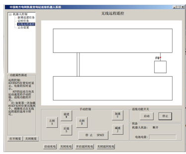 机器人运动模式有人工操作模式和自动行走模式,由人工操作模式切换到自动行走模式时需确保巡线轨迹在机器人巡线摄像头视场范围内。