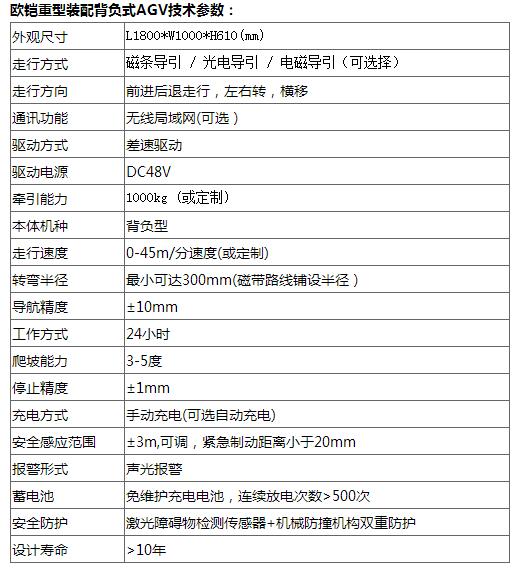 欧铠重型装配背负式AGV