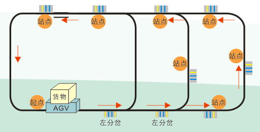 可自定义路线、多站点停靠功能,前进走行,左右转,分岔 |